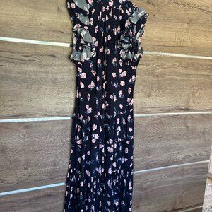 Lug Von Siga Maxi Blue w/ Pink Floral Dress - Size 42FR/US10