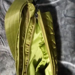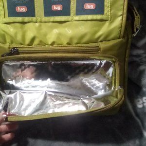 EUC was only used a couple of times. Older version I don't see any RFID labels so keep that in mind. There is still alot of organization with this bag. Front has a magnetic flap leading to an insulated pocket for your snacks and a small zipped section. Behind this there is a zipped pocket with a soft lined pouch and 2 pen holders. Main compartment contains two slip pockets and one zipped pocket. The side of bag has a magnetic closed elasticized pocket for a water bottle. This bag has a lot of life left in it!