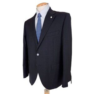 Luigi Bianchi Mantova Twill Wool Suit Jacket Size 56 46 S Black LBM