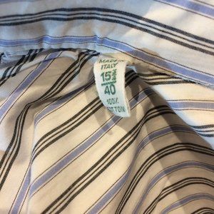 Luigi Borrelli Napoli Size 15.75/40 Medium Blue/Black Stripe WhiteCotton Dress Shirt Made in Italy
