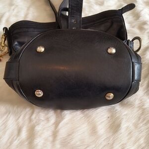 Luigi Sciorio Black Leather Shoulder Bag with Belt And Gold Buckle. Like New