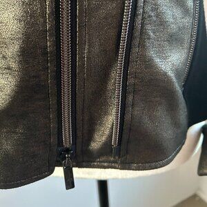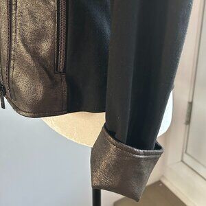 Luisa Cerano Black Metallic Versatile Mixed-Media Moto Jacket Double-Zip – US XS