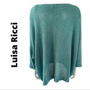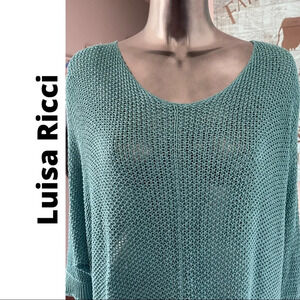 Luisa Ricci Open Knit Sweater Round Neck Turquoise Plus Size 1X