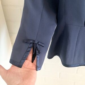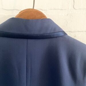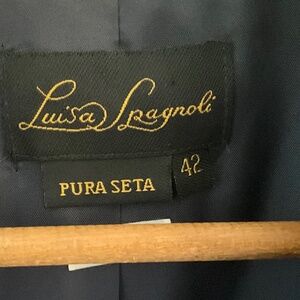 Luisa Spagnoli Women’s Blazer Silk Navy Blue Satin trims Suiting Tailoring Sz M