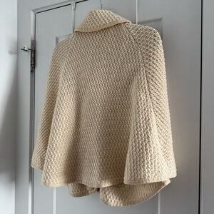 Luisa Spagnoli cream wool knit cape sweater jacket - One size