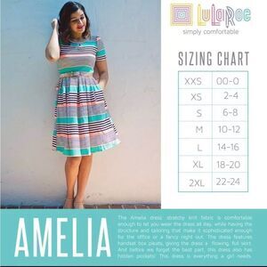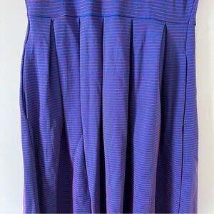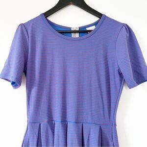LulaRoe Amelia Red Blue Shimmer Stripe Short Sleeve Fit & Flair Dress