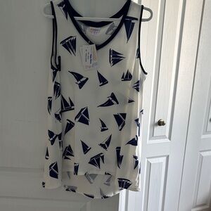 LulaRoe Kristina Nautica Sailboat Print Tank Top - White and Navy