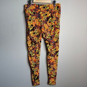 LulaRoe Women's Bright Abstract Flower Print Leggings Orange Tall & Curvy Lounge