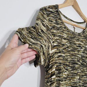 Lularoe Carly Swing Dress Olive Green Marl Pattern Short Sleeve High Low XS
