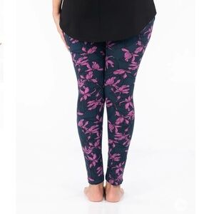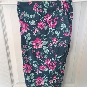 Lularoe Legging pants Floral print Emerald green/ pink Butter Soft Stretch 1X