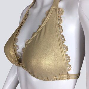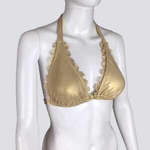 Luli Fama Triangle Bikini Top Gold Size Small Beach Vacation Resort Glam