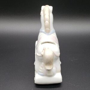-Adorable piggy bank rocking horse in white with soft pastel blue and pink colours adorn this wonderful porcelain piece; hints of light grey/beige colour accents the