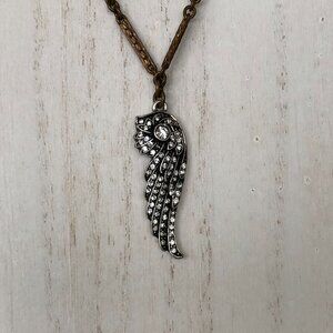 Lulu Frost crystal wing necklace that looks vintage but is modern jewelry. Great layering piece with gold or silver jewelry. The chain is bronze. Purchased at Holt Renfrew and worn a couple of times.