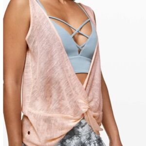 Lulu Lemon Mix and Mingle tank top. Color: Butter Pink. SIZE: M (size tag is missing- armpit to armpit measures 17.5") Wear this versatile tank forwards or backwards for 2 different looks. Features: