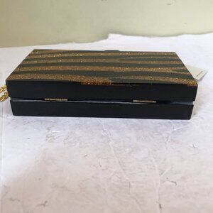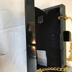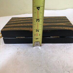 Lulu NYC NEW Zebra Acrylic Box Clutch Glitter Crossbody Shoulder Bag Gold Black