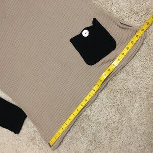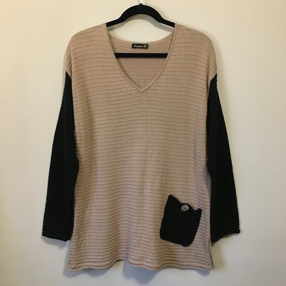 Lulu-B Beige and Black Cotton Ribbed Knit Sweater With Pocket