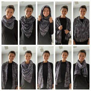 FIRST image is the actual item (showing colour/pattern); rest of images are examples of how the scarf can be worn.