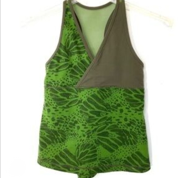 Lululemon 12 Deep-V Surplice Floral Tank Green Racerback Vented Workout Yoga Top