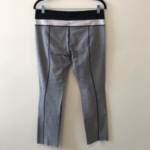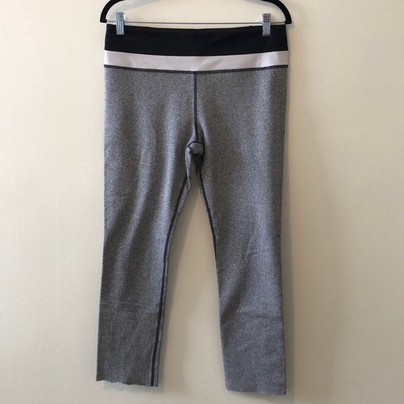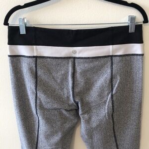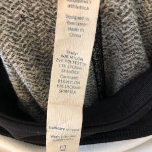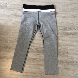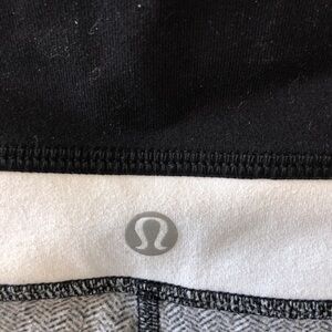 Lululemon leggings. Have been cut off at the bottom. In good condition otherwise, mild pilling throughout, material is textured so not noticeable. Cool pattern.