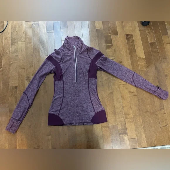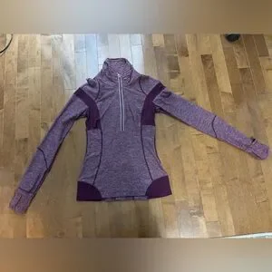 Purple lululemon 3/4 zip, has some piling, but can be shaved, in great condition, soft material and fits great. Size 4