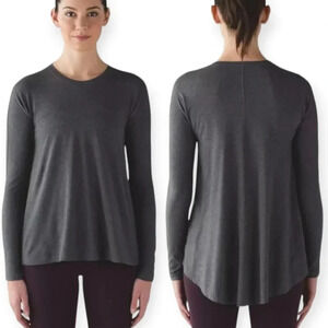 Lululemon Acadia Grey Long Sleeve Pima Cotton Hi Low Flare Flowy Hem Small