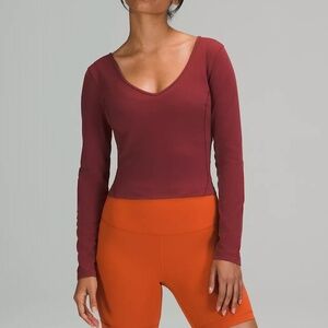 "Lululemon Align Long Sleeve Shirt" Cropped in the colour Mulled Wine. Like new. Beautiful fall colour!