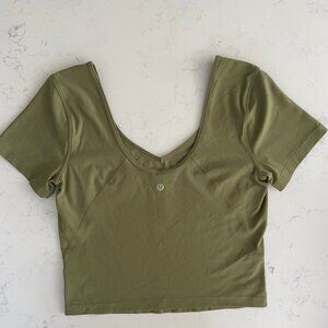 Lululemon Align SS Crop Nulu T Shirt Top Athletic Activewear Bronze Green Sz 8