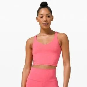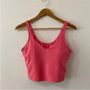 Gently used and in excellent condition align cropped tank with removable padding and a built in shelf bra. Colour is called Pink Guava