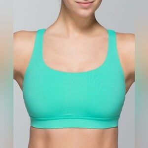 Experience unparalleled comfort with this seamless green sports bra from lululemon athletica. Designed for light support, it features a V-neck and wide shoulder straps, making it perfect for both athletic and casual wear.