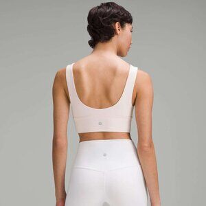 New condition Lululemon Align V-Neck Bra *Light Support, A/B Cup. Size 6, colour is strawberry milkshake. Pet and smoke free home.
