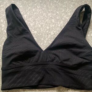 Designed for low impact activities. Feels buttery-soft and weightless with Nulu™ fabric. Good used condition. Colour is "Rhythmic Emboss Black". No padded cups included.