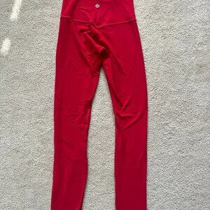 Red Lululemon Align leggings. Size 2, inseam ‘25. In good condition, rarely worn and has been sitting in my closet. Very soft and comfortable.