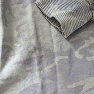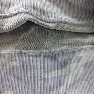 Long sleeve lightweight crew neck pullover from Lululemon. It light purple and white, and has a terry lining. It is in good condition, with a small mark on the front (pictured) that may be able to be removed!