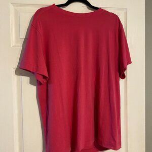 Really nice shirt, literally never worn other than trying it on. I just ended up not liking how the pink looked on me.