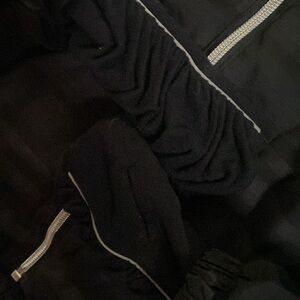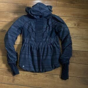 Experience the perfect blend of style and functionality with this black windbreaker from Lululemon Athletica. Designed for versatility, this lightweight jacket features a full-length front zipper and an attached hood, making it ideal for mild weather or layering. Its sleek, minimalist design ensures you stay effortlessly chic on any casual outing.