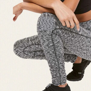 Stylish black and gray leggings. Perfect for workouts or casual wear. Comfortable and flexible fit.