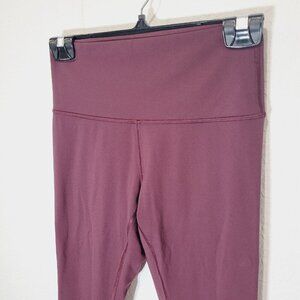 High-waisted burgundy leggings. Sleek and comfortable design. Perfect for workouts or casual wear.