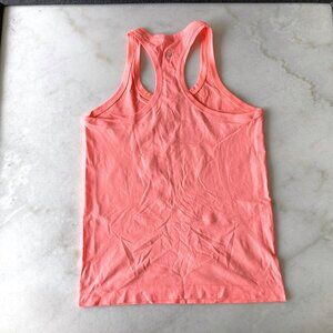 Vibrant coral tank top. Ideal for active wear. Breathable and stylish.