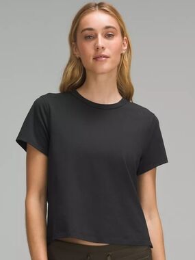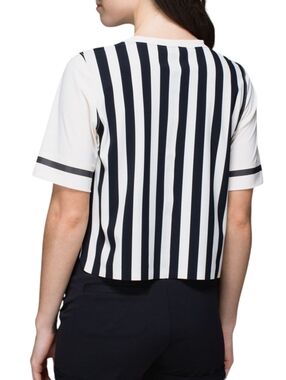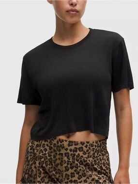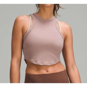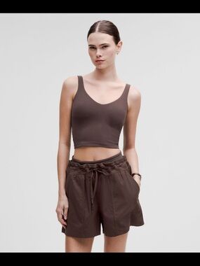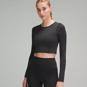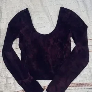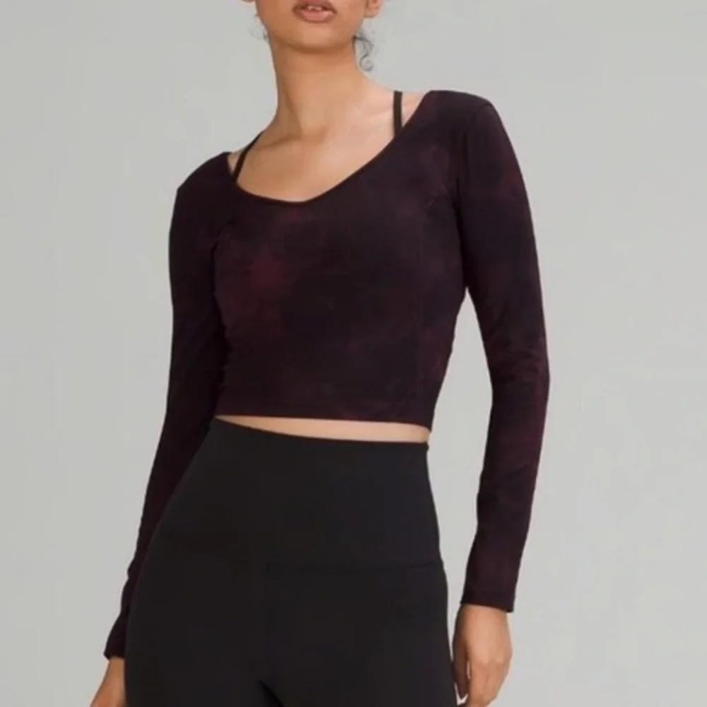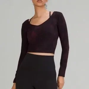 Stylish long sleeve crop top by Lululemon Athletica. Dark maroon shade. Perfect for a trendy outfit.