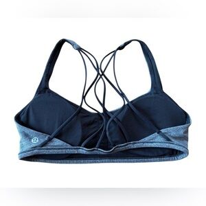 Lululemon Free To Be Zen strappy sports bra in size 8. Heathered grey color with black strappy open back. Comfortable stretch fabric, perfect for yoga or low-impact workouts. Removable padded cups included. Excellent condition 👌 / 🚭