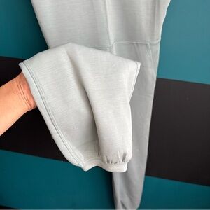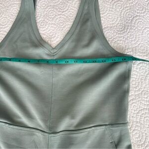Chic light green jumpsuit with a sleeveless design. Features a stylish belt for a flattering fit.