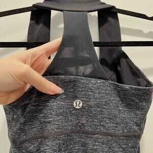 Gorgeous sleeveless Luon racerback tank top with built in bra from Lululemon in excellent like new preowned condition, no flaws. Size dot confirmed - Women's 4.Colour combo is "Heathered Coal / Black "