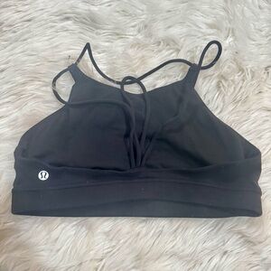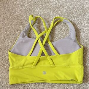 Bright yellow sports bra with cross-back straps. Ideal for workouts. Size 4.