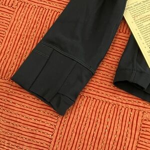 NWT beautiful cut and details lightweight fitted jacket with front pockets, inner slots pockets, cuffed thumb hole wrists and lovely zipper details. Only selling this one because it is too tight for me. Buttery soft Nulu fabric is sweat wicking and has four-way stretch locker loop for easy hanging.. elastic zipper pull doubles as Emergency hair tie slim fit hip length. My camera makes the color look lighter than it is. It is dark blue.