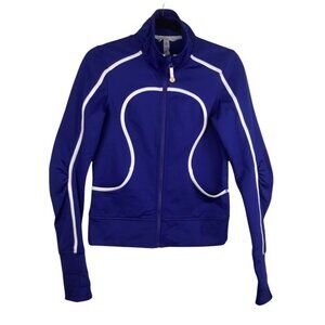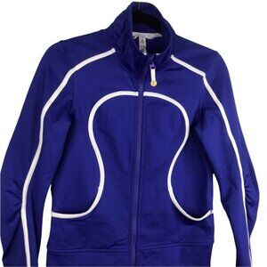 LULULEMON ATHLETICA “Asana” Zip Up Track/Running/Warm-Up Jacket - size 4 - awesome color - it is a purple/blue tone with white trim ... vintage jacket that is very stylish & cool!