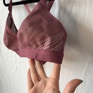 Lululemon Awake to Lace Sports Bra Mesh V-Neck Feminine Mauve Pink Size 32D