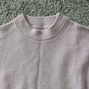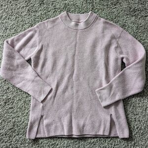 Really nice light pink Lululemon crew neck sweater! It's really cute, and has two small splits on either side in the front.