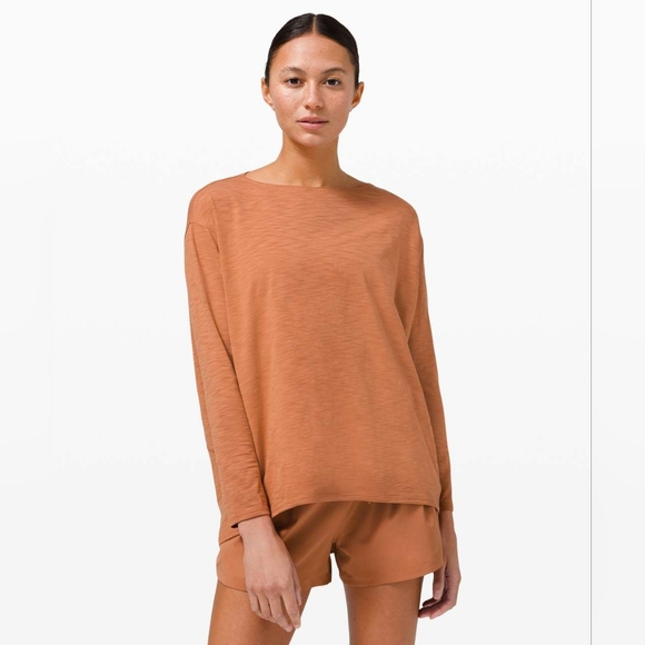A classic long sleeve in desert sun you'll reach for again and again. The scooped back hem adds length when you want a bit more coverage, ptp 25".