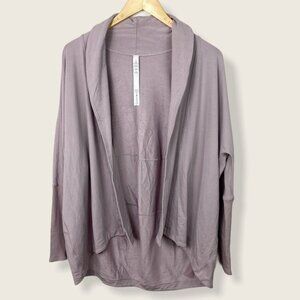 Lululemon Back In Action Wrap in Women's Size 2 (but will fit most) and Smoky Blush Pink Colour. Long sleeves with thumb holes. Open drape front. Made of modal french terry fabric. Enjoy the comfort of Savasana all day long in this oversized wrap designed to keep you feeling warm and cozy all day long. Modal French Terry fabric is naturally soft and breathable. Excellent condition. No flaws.