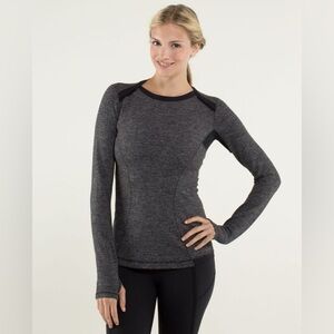 Lululemon Base Runner Long Sleeve Mini Check Pique Black , sz 4